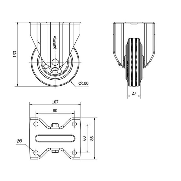 Rueda goma fija Alex diametro 100 mm. modelo 2-0226