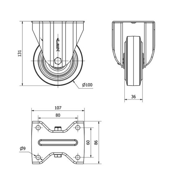 Rueda goma fija Alex diametro 100 mm. modelo 2-3758