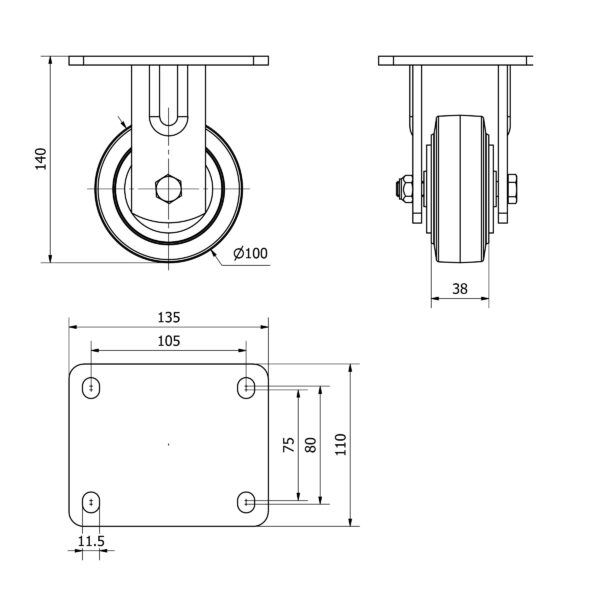 Rueda goma fija Alex diametro 100 mm. modelo 4-0862