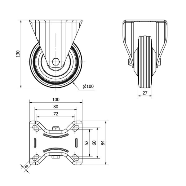 Rueda goma fija Alex diametro 100 mm. modelo TW0030 EAN 8422202000305