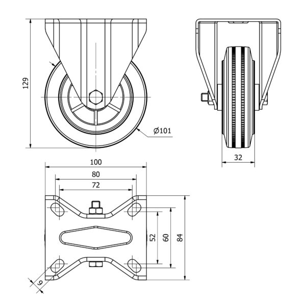Rueda goma fija Alex diametro 100 mm. modelo TW0259
