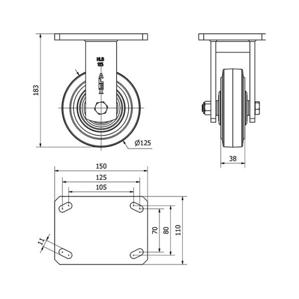 Rueda goma fija Alex diametro 125 mm. modelo 2-0459