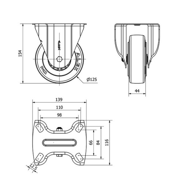Rueda goma fija Alex diametro 125 mm. modelo 2-1014