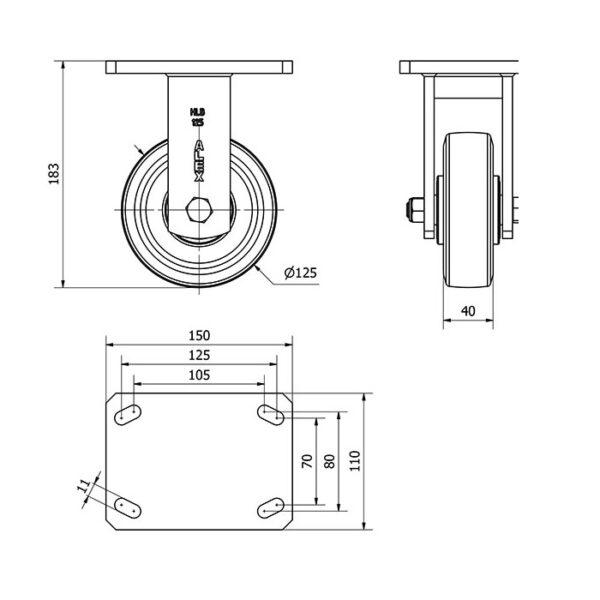 Rueda goma fija Alex diametro 125 mm. modelo 2-1442 EAN 8422202214429