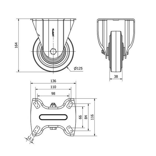 Rueda goma fija Alex diametro 125 mm. modelo 2-2047 EAN 8422202220475