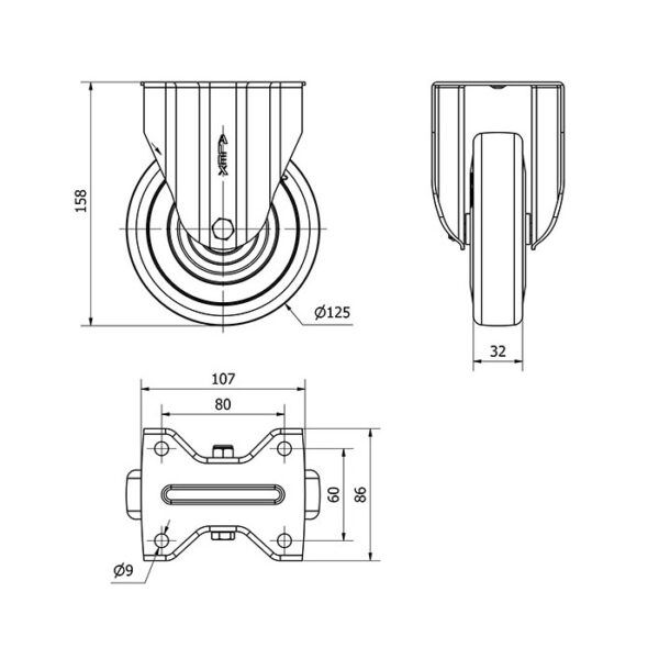 Rueda goma fija Alex diametro 125 mm. modelo 2-4854 EAN 8422202248547
