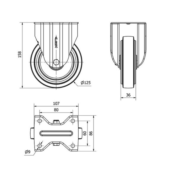 Rueda goma fija Alex diametro 125 mm. modelo 2-4864