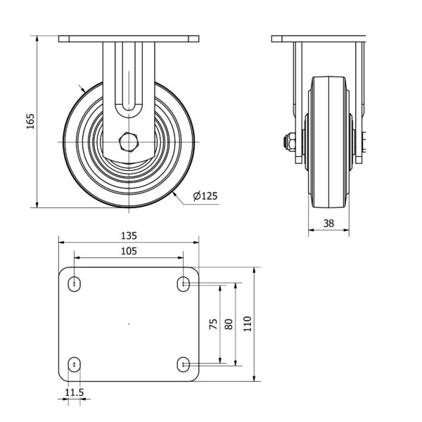 Rueda goma fija Alex diametro 125 mm. modelo 4-0795