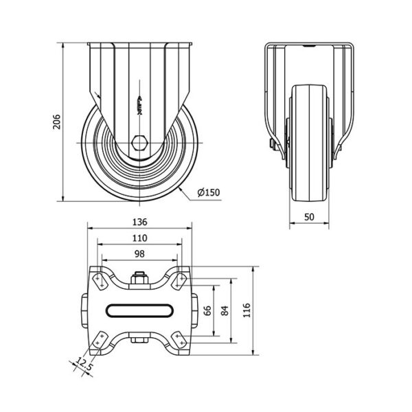 Rueda goma fija Alex diametro 150 mm. modelo 2-2050