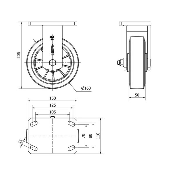 Rueda goma fija Alex diametro 160 mm. 2-0451
