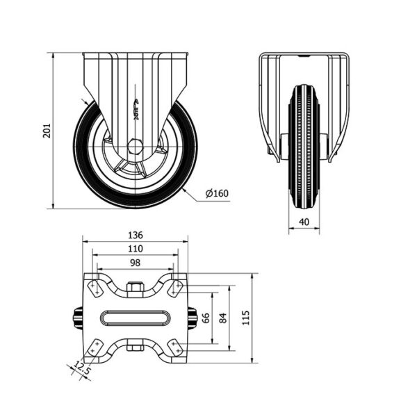 Rueda goma fija Alex diametro 160 mm. 2-3403