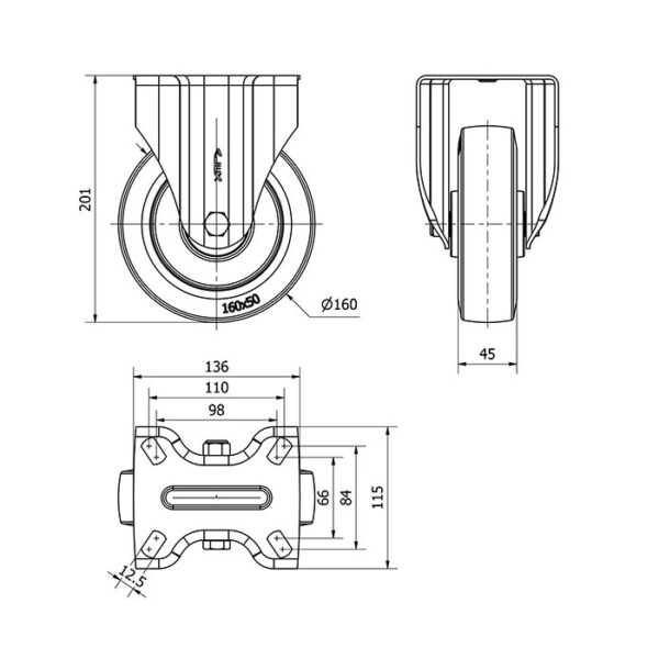 Rueda goma fija Alex diametro 160 mm. modelo 2-3772