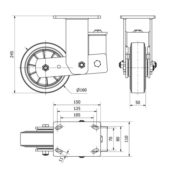 Rueda goma fija Alex diametro 160 mm. modelo 2-4413