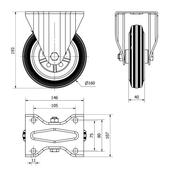 Rueda goma fija Alex diametro 160 mm. modelo TW0276