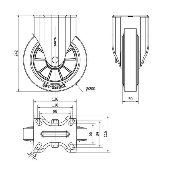 Rueda goma fija Alex diametro 200 mm. 2-1313