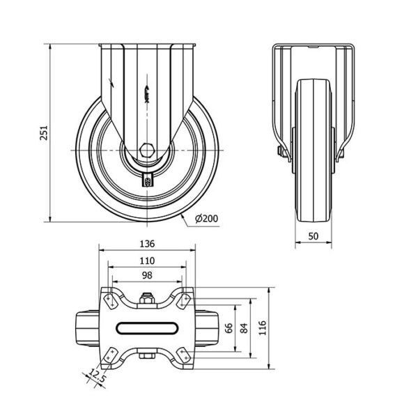 Rueda goma fija Alex diametro 200 mm. 2-2053