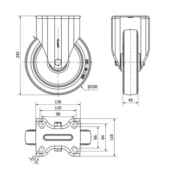 Rueda goma fija Alex diametro 200 mm. 2-3778