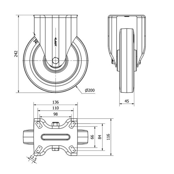 Rueda goma fija Alex diametro 200 mm. 2-4469