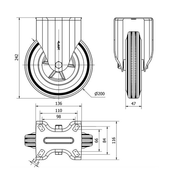 Rueda goma fija Alex diametro 200 mm. modelo 2-1189