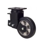Las ruedas Alex serie HLSB-DE son ruedas con el núcleo de aluminio y la banda de goma negra elástica con dureza de 70º shore A, indicadas para soportar altas cargas de hasta 450 Kg. Con soporte de suspensión elástica, mediante la incorporación de un muelle muy resistente para absorber golpes, choques y desniveles. Recorrido de suspensión hasta 25 mm., ideal en suelos irregulares donde su amortiguación actúa. Se utilizan en útiles de transporte logístico, gradas móviles, plataformas elevadoras, carros de transporte, maquinaria pesada del sector de la construcción y grúas móviles. DE: ideal para el traslado manual de cargas medianas. Silenciosa. Absorción de golpes y vibraciones. Máxima protección de los suelos y del equipo. Ideal para suelos irregulares.