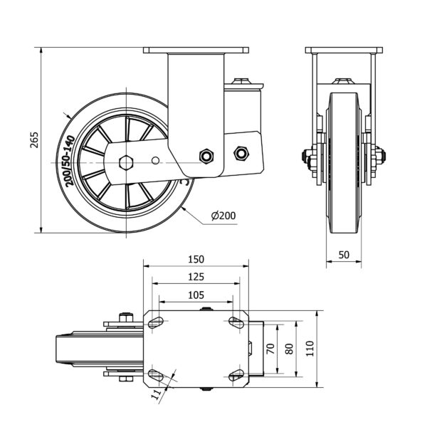 Rueda goma fija Alex diametro 200 mm. modelo 2-3963