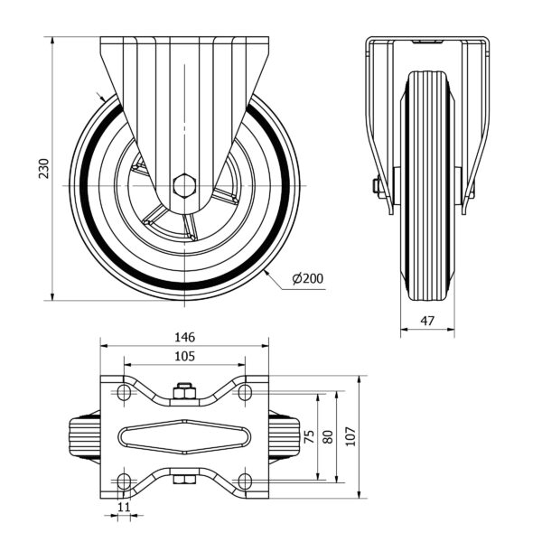 Rueda goma fija Alex diametro 200 mm. modelo TW0262