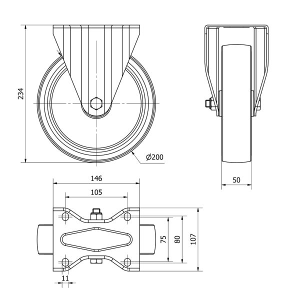 Rueda goma fija Alex diametro 200 mm. modelo TW0306