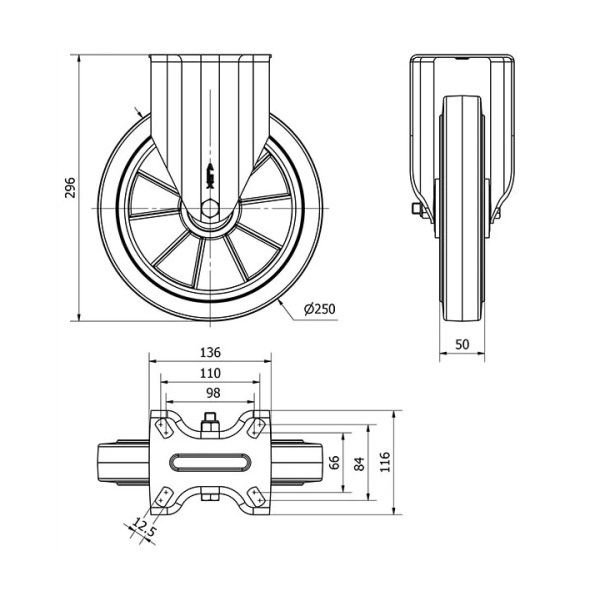 Rueda goma fija Alex diametro 250 mm. 2-0405