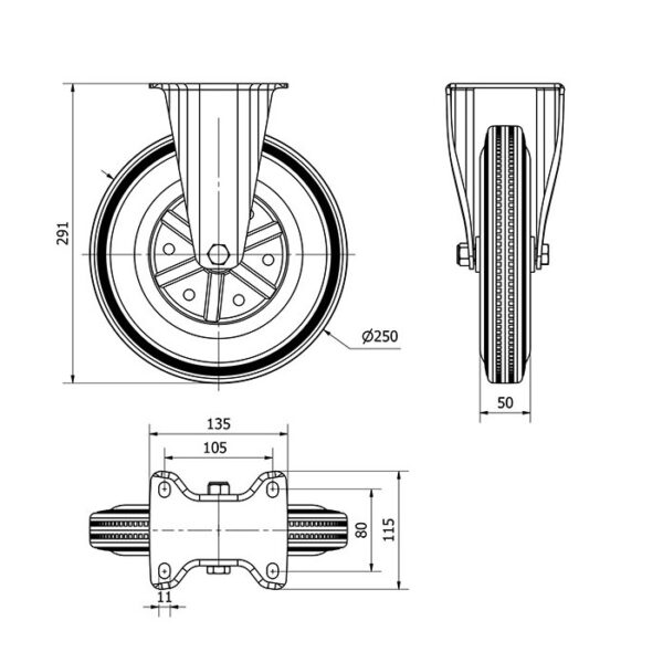 Rueda goma fija Alex diametro 250 mm. modelo 2-0248