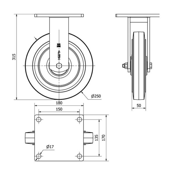 Rueda goma fija Alex diametro 250 mm. modelo 2-1958