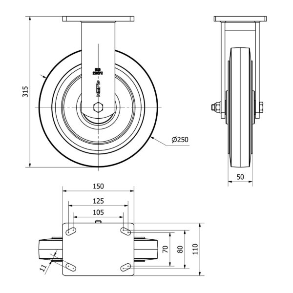 Rueda goma fija Alex diametro 250 mm. modelo 2-2291