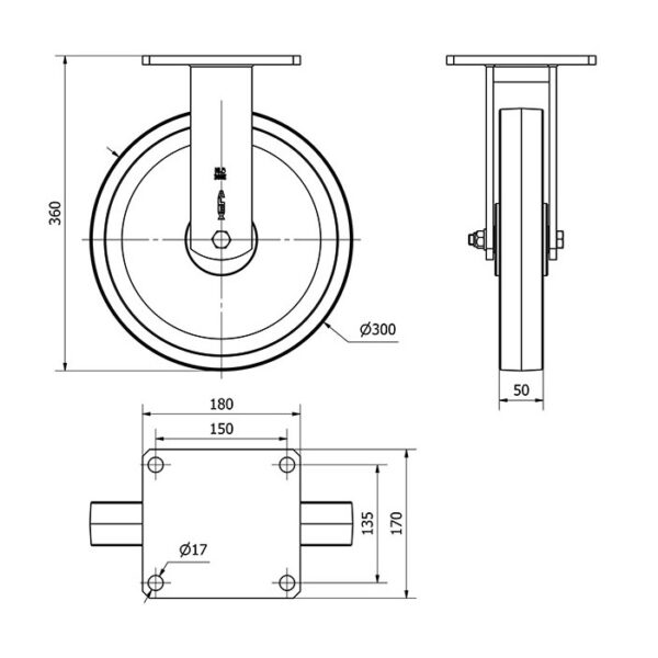 Rueda goma fija Alex diametro 300 mm. 2-0984