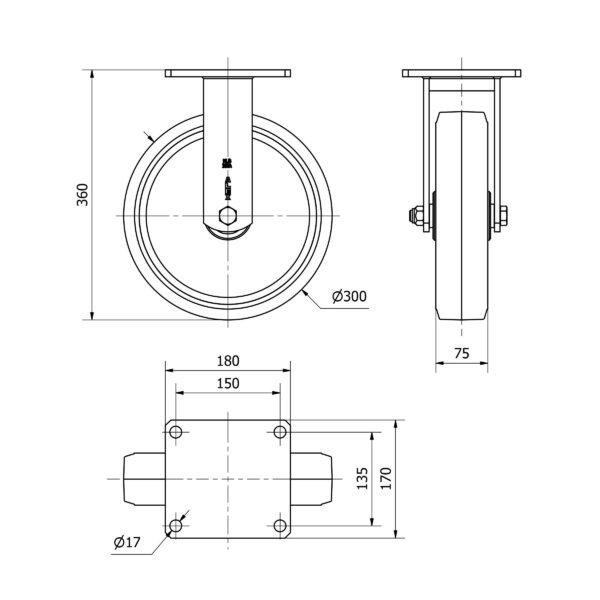 Rueda goma fija Alex diametro 300 mm. 2-3566