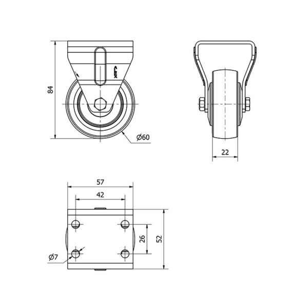 Rueda goma fija Alex diametro 60 mm. modelo 2-1328