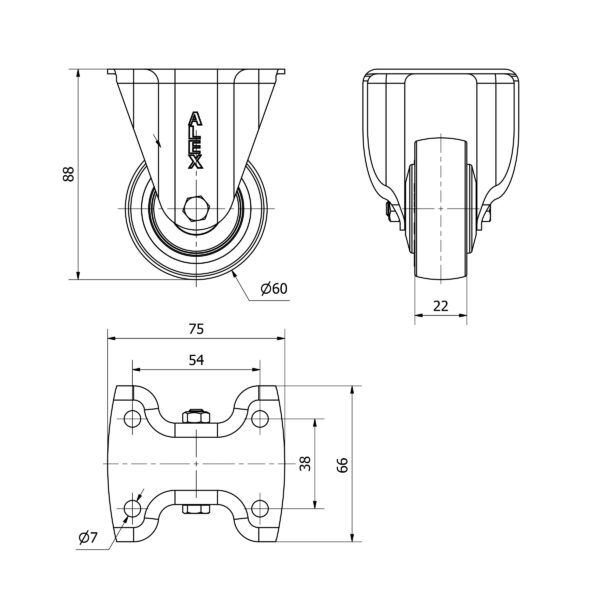 Rueda goma fija Alex diametro 60 mm. modelo 2-4334