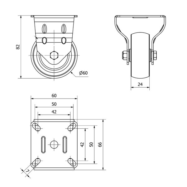 Rueda goma fija Alex diametro 60 mm. modelo TW0234