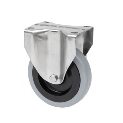 La serie de ruedas Alex ZV INOX-PGA: son ruedas de goma negra natural, con todos sus elementos de acero inoxidable (AISI-304), indicadas para soportar cargas hasta 135 Kg. Se utilizan en exteriores, carros de transporte en alimentación, comedores, restaurantes, empresas de alimentación, maquinas de embalajes, cintas transportadoras, construcciones inoxidables, contenedores y jaulas de transporte. PGA: Rueda suave y silenciosa. No mancha el suelo.
