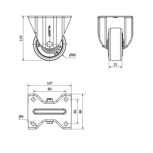 Rueda goma fija Alex diametro 80 mm. 2-1320