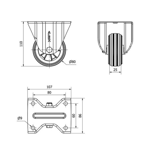 Rueda goma fija Alex diametro 80 mm. 2-1672