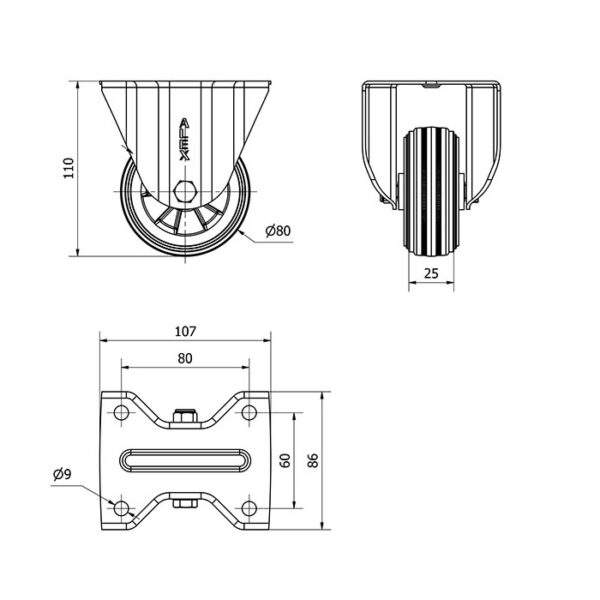 Rueda goma fija Alex diametro 80 mm. modelo 2-0867