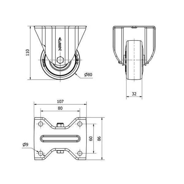 Rueda goma fija Alex diametro 80 mm. modelo 2-2391