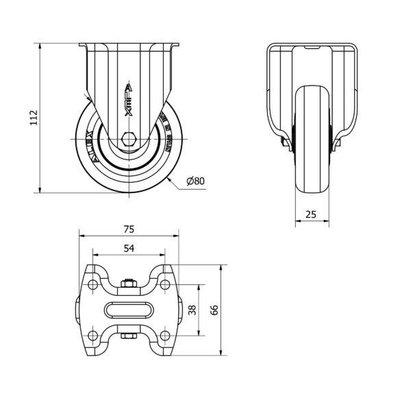 Rueda goma fija Alex diametro 80 mm. modelo 2-2814