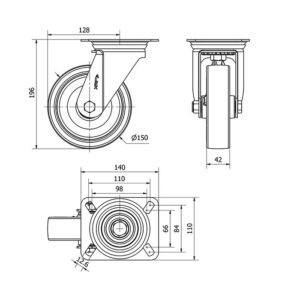 La serie de ruedas Alex BHI INOX-PGI son de goma gris inyectada, con todos sus componentes de acero inoxidable (AISI-304), indicadas para soportar cargas hasta 60 Kg. Se utilizan en exteriores, carros de transporte de alimentación, cantinas, comedores, restaurantes, empresas de alimentación, máquinas de embalajes y cintas transportadoras. PGI: No ralla el suelo. Silenciosa y no deja huella.