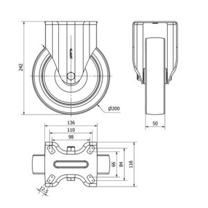 Rueda goma fija Alex diametro 80 mm. modelo 2-3041 EAN 8422202230412