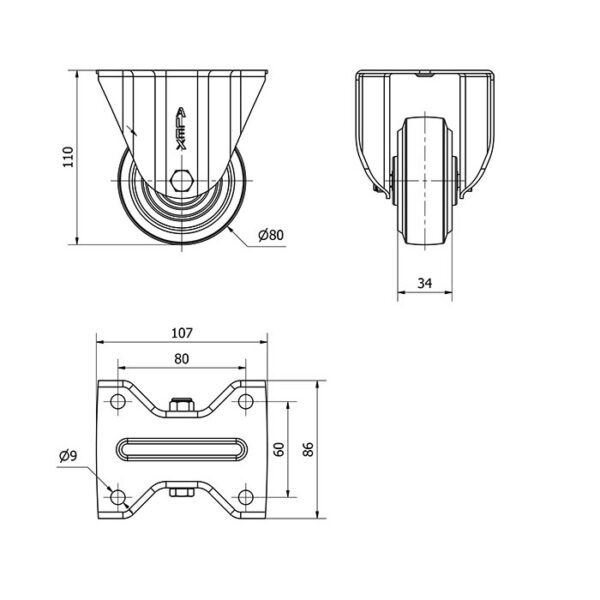 Rueda goma fija Alex diametro 80 mm. modelo 2-3498