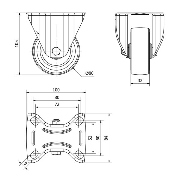 Rueda goma fija Alex diametro 80 mm. modelo TW0223 EAN 8422202002231