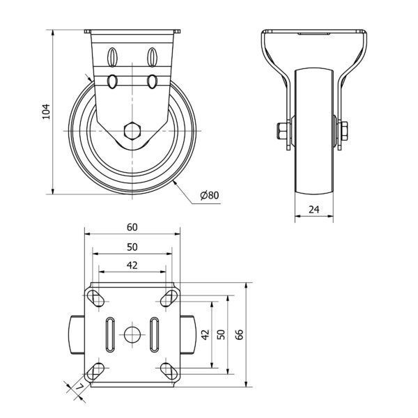 Rueda goma fija Alex diametro 80 mm. modelo TW0235