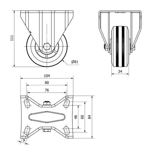 Rueda goma fija Alex diametro 80 mm. modelo TW0258