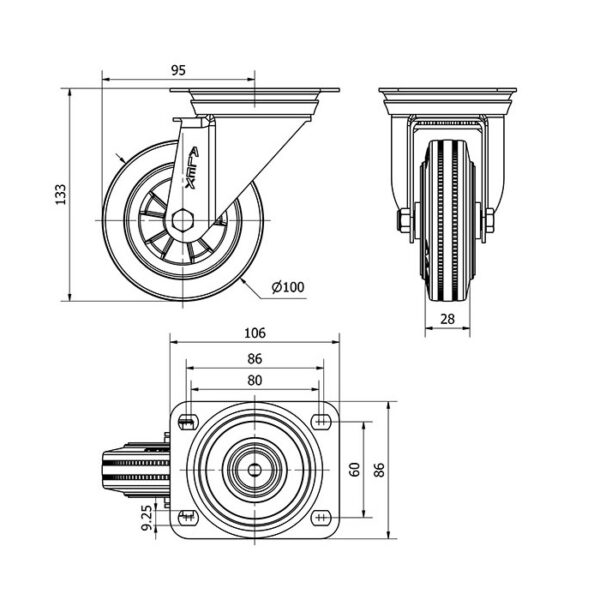 Rueda goma giratoria Alex diametro 100 mm. 2-1670