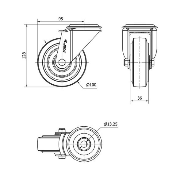 Rueda goma giratoria Alex diametro 100 mm. 2-2743